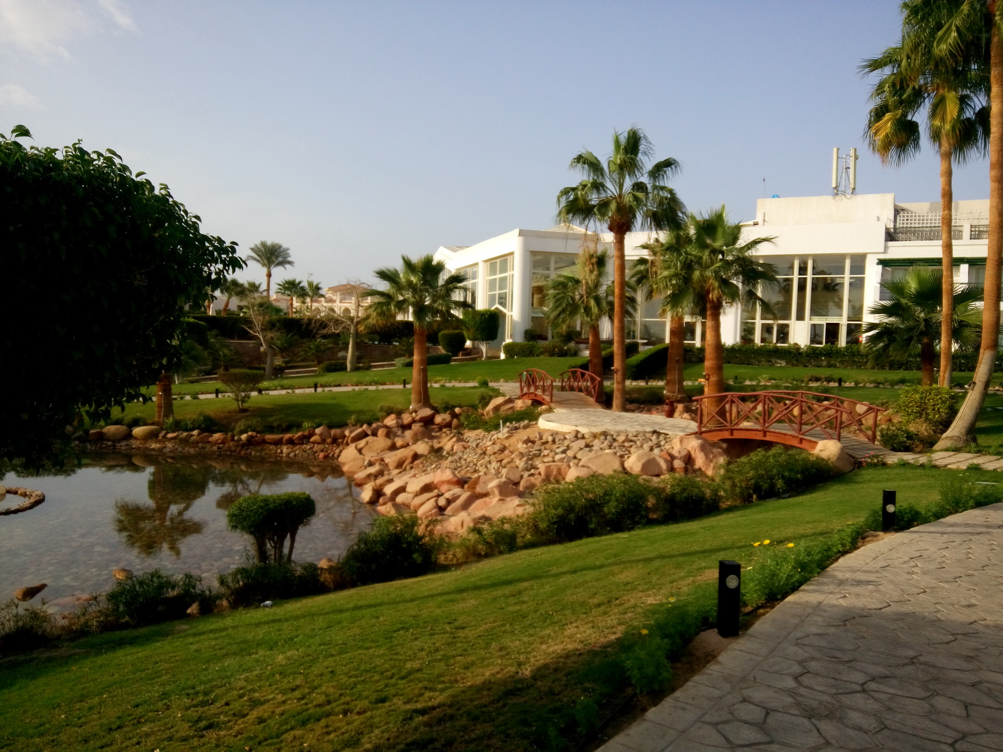 Визитной карточкой отеля есть его уникальный фуникулер, соединяющий лобби с центральным бассейном. Любители активного способа жизни могут преодолеть это расстояние по 144 ступенькам. Hilton Sharm Waterfalls Resort 5* — один из немногих отелей курорта, который имеет бассейны с морской водой.